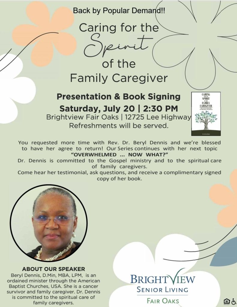 Excerpt from Day 14, Caring for the Spirit of the Family Caregiver: THE GIFT OF GOD THAT IS WITHIN YOU. “Caregivers live out the message and the spirit of the Gospel with every act of love, compassion, kindness, and care toward the care recipient. As the message and spirit of the Gospel are lived out, the gift of God within each caregiver is rekindled, and the spirit of power, of love, and self-discipline are activated.”